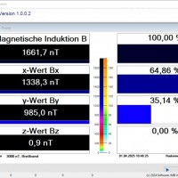 用于低频磁场的三维(各向同性)磁场传感器。也可以进行单通道测量。测量值传输到 PC(例如笔记本电脑或笔记本电脑;不包括在内!)并显示。